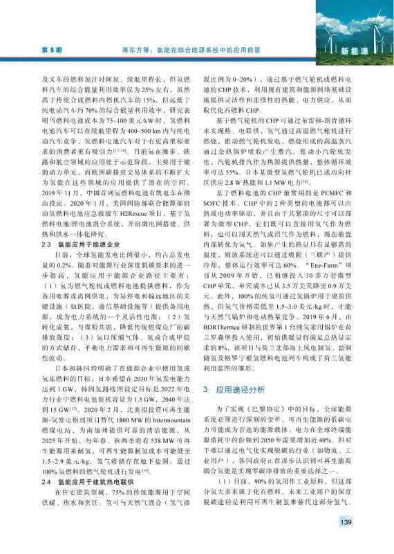 氫能的開發(fā)利用是應(yīng)對全球氣候變化,保障國家能源安全,實現(xiàn)低碳轉(zhuǎn)型的重要途徑之一。對比了氫儲能技術(shù)與當(dāng)前主要儲能技術(shù)的關(guān)鍵性參數(shù),結(jié)果顯示氫儲能技術(shù)具有整體性系統(tǒng)優(yōu)勢;探討了氫能在未來綜合能源系統(tǒng)中工業(yè)用戶、交通運輸、建筑熱電聯(lián)供、能源企業(yè)潛在的應(yīng)用途徑及未來關(guān)鍵技術(shù)節(jié)點;給出了對中國氫能發(fā)展的啟示。為氫能在綜合能源系統(tǒng)中的應(yīng)用提供參考。