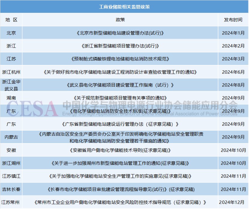 此外,CESA儲(chǔ)能應(yīng)用分會(huì)還不完全統(tǒng)計(jì)了2024年全國(guó)各省市地區(qū)針對(duì)工商業(yè)儲(chǔ)能監(jiān)管的相關(guān)政策??梢悦黠@觀察到,工商業(yè)儲(chǔ)能產(chǎn)業(yè)發(fā)展最為領(lǐng)先的江蘇、浙江、廣東三省,在相關(guān)監(jiān)管政策的發(fā)布上也走在了前列。未來(lái),隨著儲(chǔ)能技術(shù)的持續(xù)進(jìn)步和儲(chǔ)能產(chǎn)業(yè)的逐步普及,各級(jí)政府為了保障儲(chǔ)能項(xiàng)目的安全高效運(yùn)行,對(duì)于儲(chǔ)能相關(guān)項(xiàng)目的監(jiān)管力度勢(shì)必會(huì)進(jìn)一步加強(qiáng)。