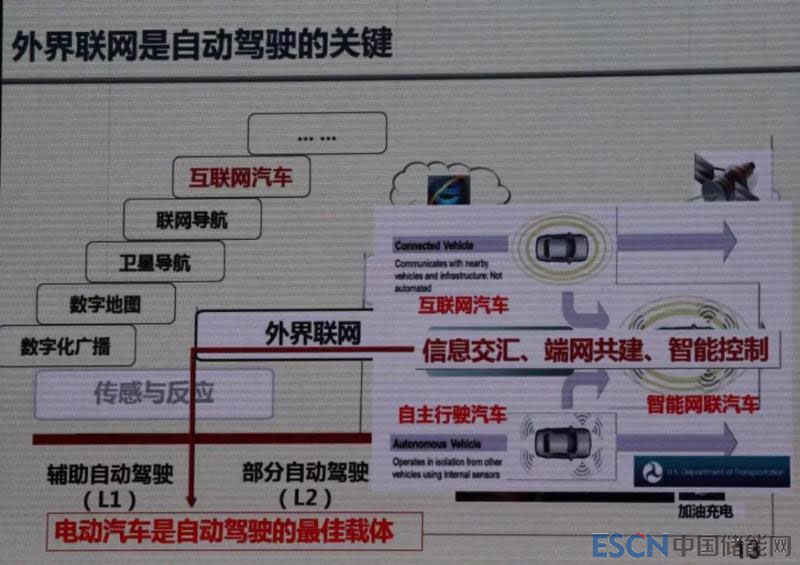 萬鋼指出,L2(部分自動駕駛)階段,將數(shù)字廣播、數(shù)字地圖、衛(wèi)星導(dǎo)航和聯(lián)網(wǎng)導(dǎo)航等諸多外界信息融合的互聯(lián)網(wǎng)汽車發(fā)展迅速。外部信息和汽車自動駕駛的內(nèi)部信息集合在一起,是智能網(wǎng)聯(lián)汽車的一個特征,而外聯(lián)網(wǎng)將是自動駕駛的關(guān)鍵,信息交匯、端網(wǎng)共建、智能控制成為它(外聯(lián)網(wǎng)技術(shù))的焦點(diǎn)。電動汽車所有的反應(yīng)都由數(shù)字驅(qū)動,整體數(shù)字化程度最高。從外部網(wǎng)聯(lián)角度來看,電動汽車仍然是自動駕駛的最佳載體。