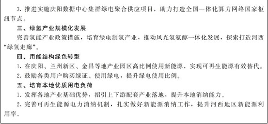 (九)促進(jìn)用能結(jié)構(gòu)綠色轉(zhuǎn)型。大力實(shí)施可再生能源替代行動(dòng),構(gòu)建以電能消費(fèi)為主導(dǎo)的清潔能源消費(fèi)體系。穩(wěn)步有序推進(jìn)工業(yè)、交通運(yùn)輸、建筑、農(nóng)業(yè)農(nóng)村、新基建等領(lǐng)域用能綠電替代。倡導(dǎo)企事業(yè)單位辦公綠色用能,提高城鄉(xiāng)居民終端用能電氣化水平,持續(xù)提升電能占終端能源消費(fèi)比重。(責(zé)任單位:省能源局、省發(fā)展改革委、省工信廳、省交通運(yùn)輸廳、省住建廳、省農(nóng)業(yè)農(nóng)村廳、省機(jī)關(guān)事務(wù)局、國網(wǎng)甘肅省電力公司)