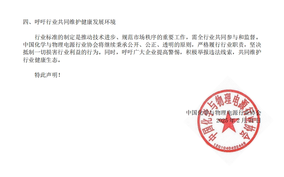 中國化學(xué)與物理電源行業(yè)協(xié)會嚴正聲明