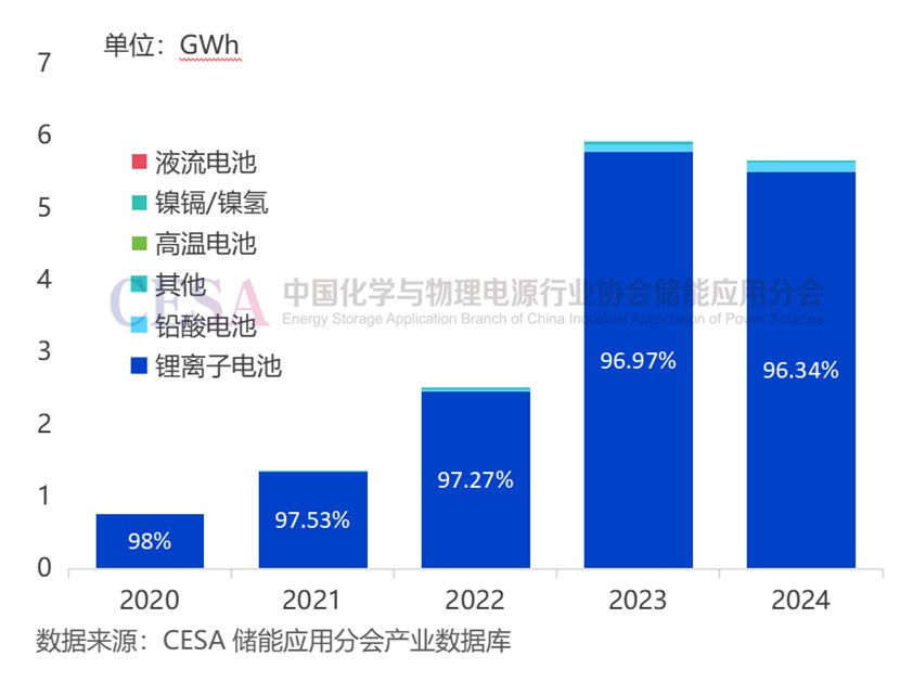 圖 2024年德國(guó)電池儲(chǔ)能各技術(shù)路線新增裝機(jī)容量占比