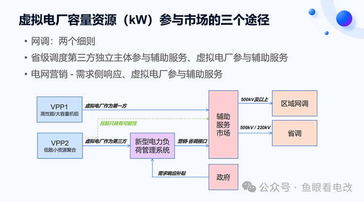 虛擬電廠資源以 kW 為單位,按照虛擬機(jī)組,除了傳統(tǒng)的需求響應(yīng)補(bǔ)貼外,還有三個(gè)變現(xiàn)方向: