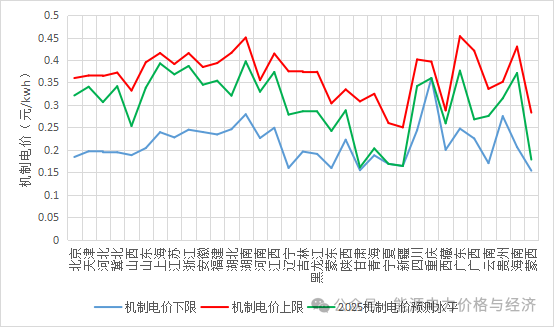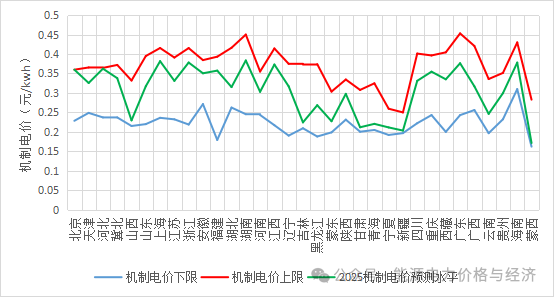 各省2025年集中式光伏機(jī)制電價水平預(yù)測如圖2所示。