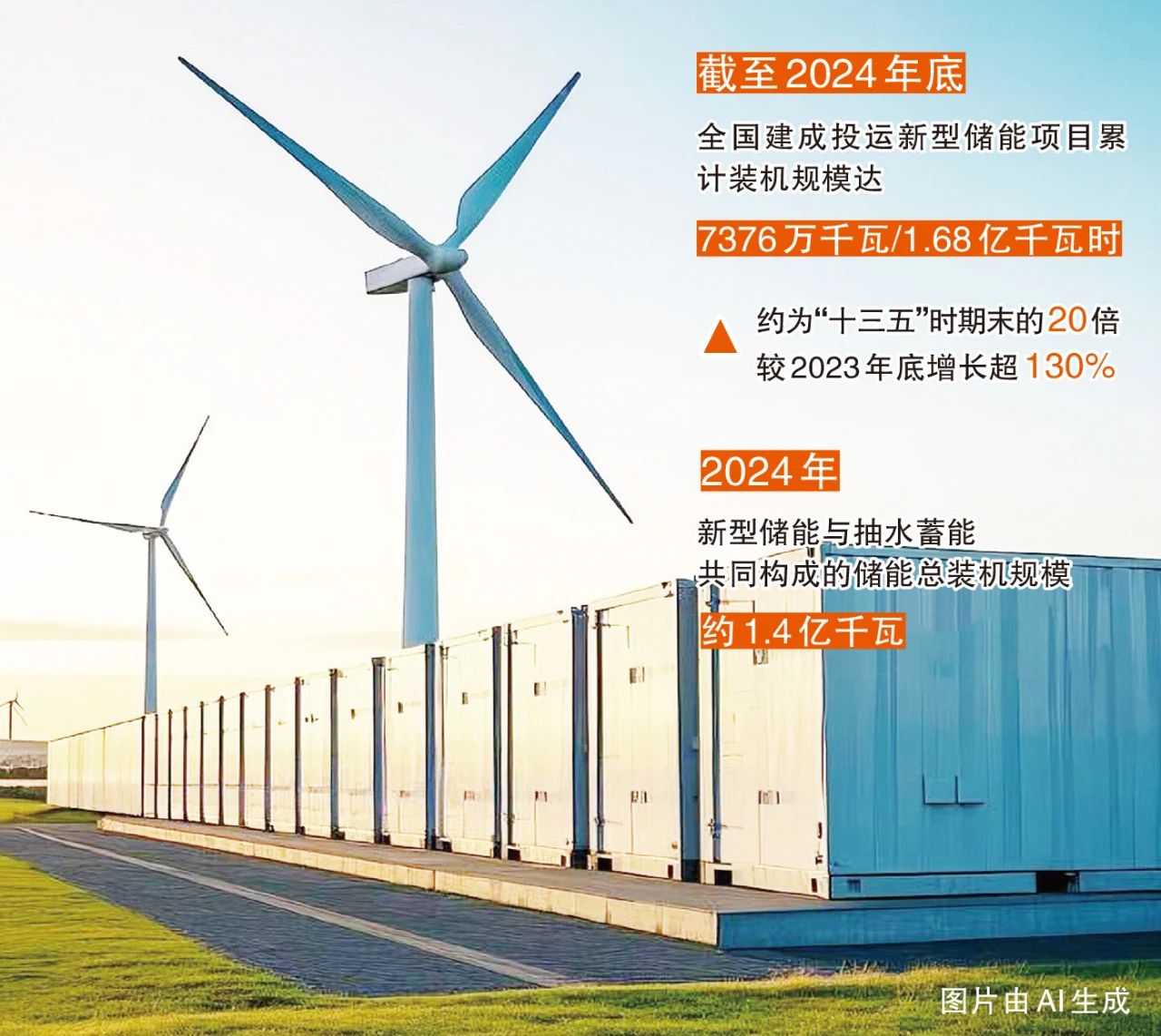 國家能源局?jǐn)?shù)據(jù)顯示,截至2024年底,新型儲能裝機(jī)規(guī)模達(dá)到7376萬千瓦/1.68億千瓦時,較“十三五”末增長超過20倍。新型儲能與抽水蓄能共同構(gòu)成的儲能總裝機(jī)規(guī)模達(dá)到了約1.4億千瓦。