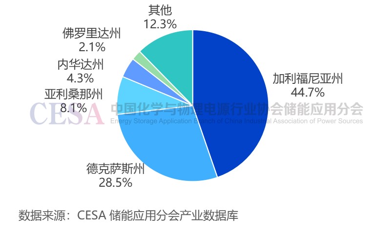 圖 2024年美國各州大規(guī)模電池儲能新增裝機功率占比