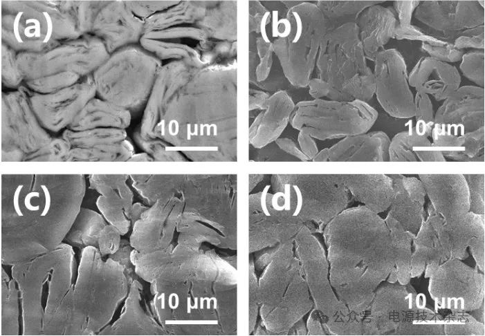 圖2 不同致密化程度天然石墨剖面SEM照片
