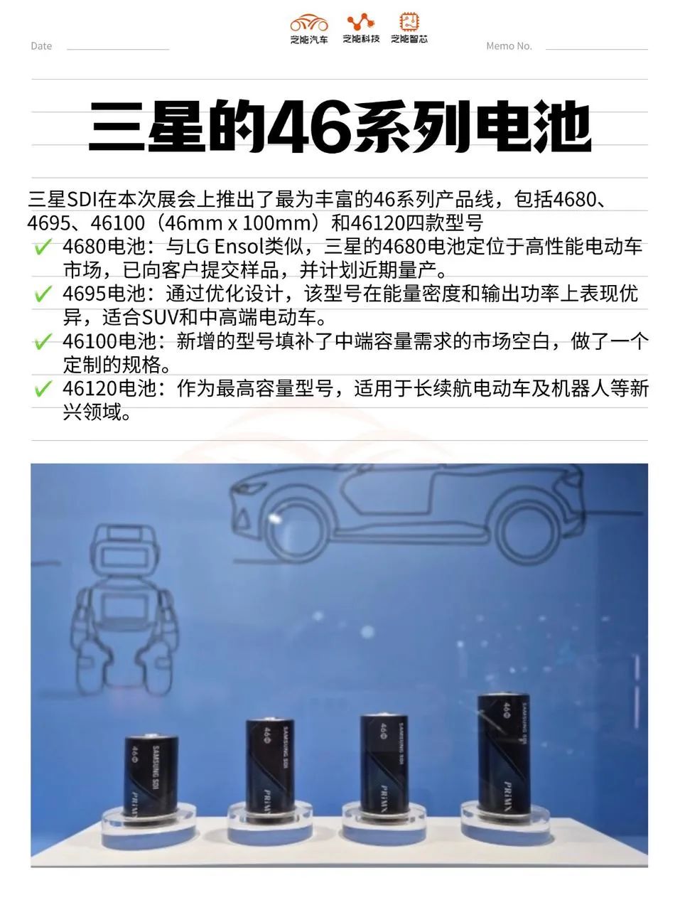 我們一起來盤點三家公司在展臺上的產品及其特點,并深入分析大圓柱電池對韓國電池產業(yè)的戰(zhàn)略意義。