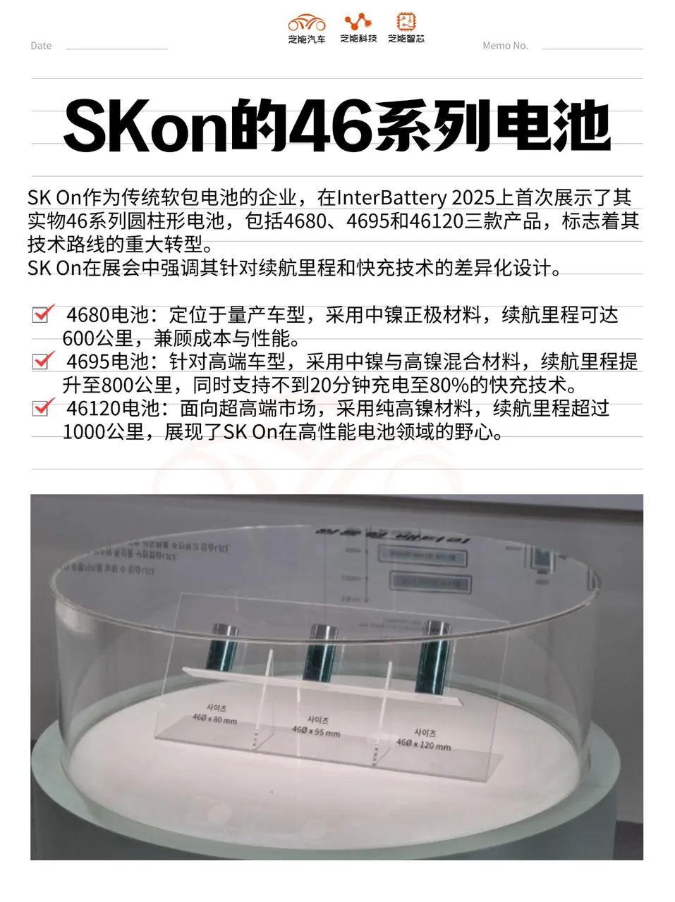 46120電池:面向超高端市場,采用純高鎳材料,續(xù)航里程超過1000公里,展現了SK On在高性能電池領域的野心。