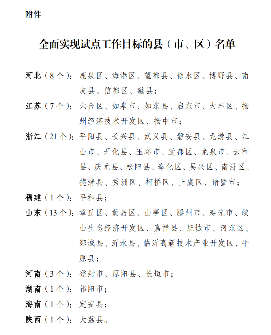 附件:全面實現(xiàn)試點工作目標的縣(市、區(qū))名單