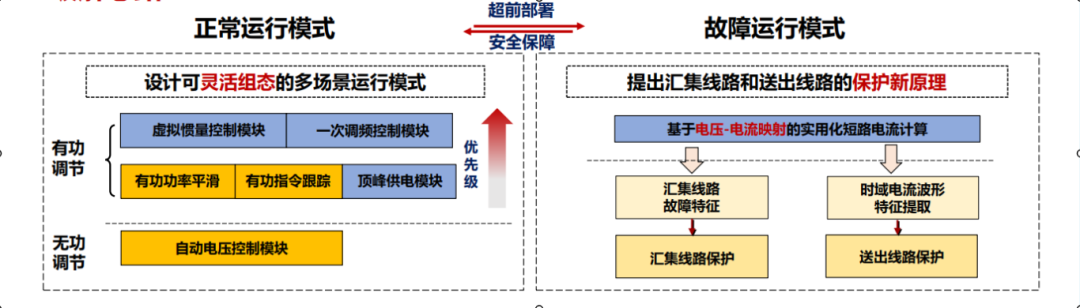 (2)“可控”為風(fēng)光儲場站協(xié)同優(yōu)化控制與保護技術(shù)。在自動電壓控制(AVC)方面,提出風(fēng)光儲場站自動電壓控制方法,實現(xiàn)無功協(xié)調(diào)快速控制,調(diào)節(jié)時間由120s降低到60s以內(nèi),保障電網(wǎng)電壓質(zhì)量合格。同時,研制了新能源匯集場站保護裝置,保護動作時間由500ms降低至40ms以內(nèi);在自動發(fā)電控制(AGC)方面,提出風(fēng)光儲場站有功實時控制方法,指令跟蹤穩(wěn)態(tài)偏差不超過±2%額定功率,場站分鐘級有功功率變化最大幅度由10%降低至5%,最大限度降低棄風(fēng)棄光。