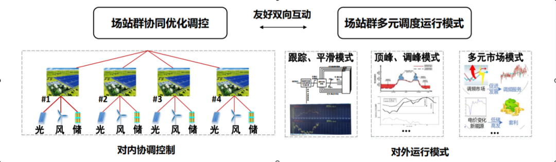 常規(guī)新能源電站因無儲能或者儲能配比低,導(dǎo)致其發(fā)電出力的隨機性、間歇性和波動性等問題突出,并網(wǎng)友好性較差。針對該問題,示范項目著力建設(shè)電網(wǎng)友好型新一代“新能源+儲能”電站,從“儲能規(guī)模配置”以及“一體化智慧集控”兩方面進行創(chuàng)新,率先探索新能源電站的友好并網(wǎng)路徑,其中“儲能規(guī)模配置”是示范項目實現(xiàn)并網(wǎng)友好的物理基礎(chǔ),而“一體化智慧集控”則是實現(xiàn)并網(wǎng)友好的途徑手段。