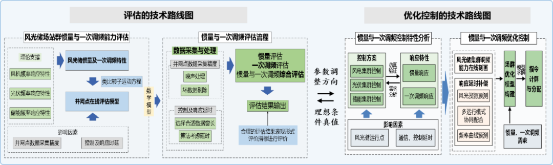 (4)“可支撐”為新能源快速一次調(diào)頻和虛擬慣量支撐技術(shù)。在電氣量測量方面,提出基于二次擬合的短時延頻率測量方法,突破了傳統(tǒng)算法只能測量5Hz以下的低振蕩頻率相量的限制;在頻率主動支撐控制方面,構(gòu)建了考慮通信延時與控制精度的優(yōu)化模型,將一次調(diào)頻響應(yīng)時間由1s降低到300ms,實現(xiàn)了對頻率支撐功率的精細化控制;在頻率主動支撐能力在線評估方面,設(shè)計了基于能量視角的場站等效調(diào)頻參數(shù)估計方法,等效慣量及等效調(diào)差率在線估計誤差均小于5%。