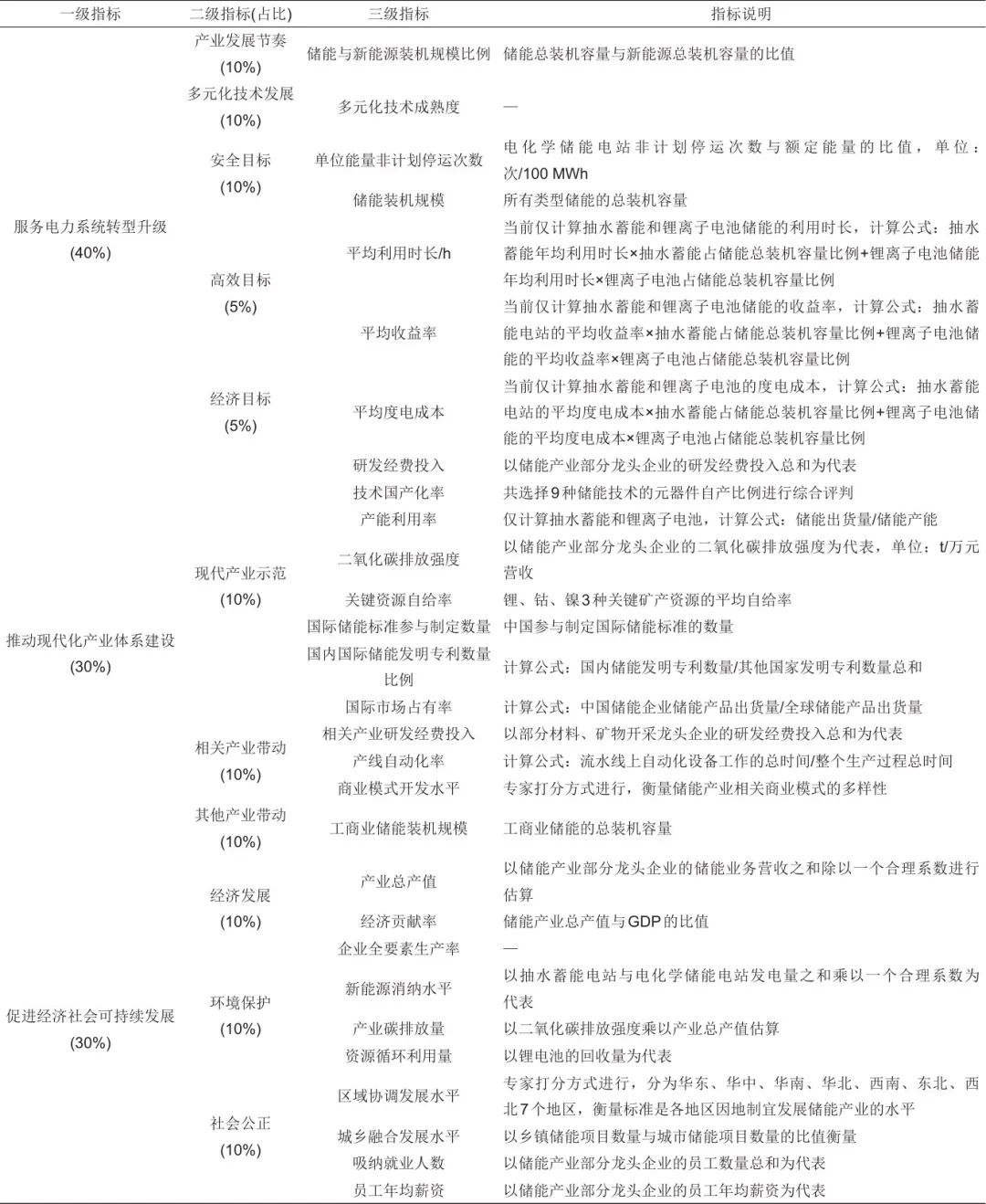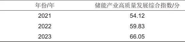表1 儲(chǔ)能產(chǎn)業(yè)高質(zhì)量發(fā)展綜合評(píng)價(jià)指標(biāo)體系