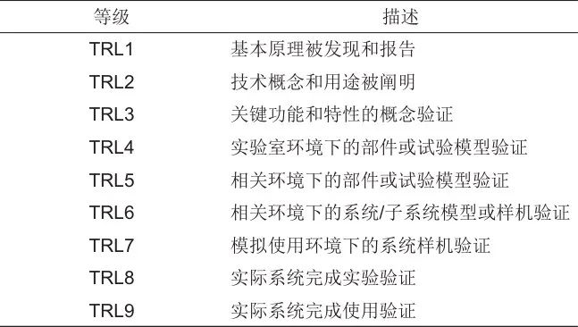 表2 美國(guó)航天局技術(shù)成熟度等級(jí)定義