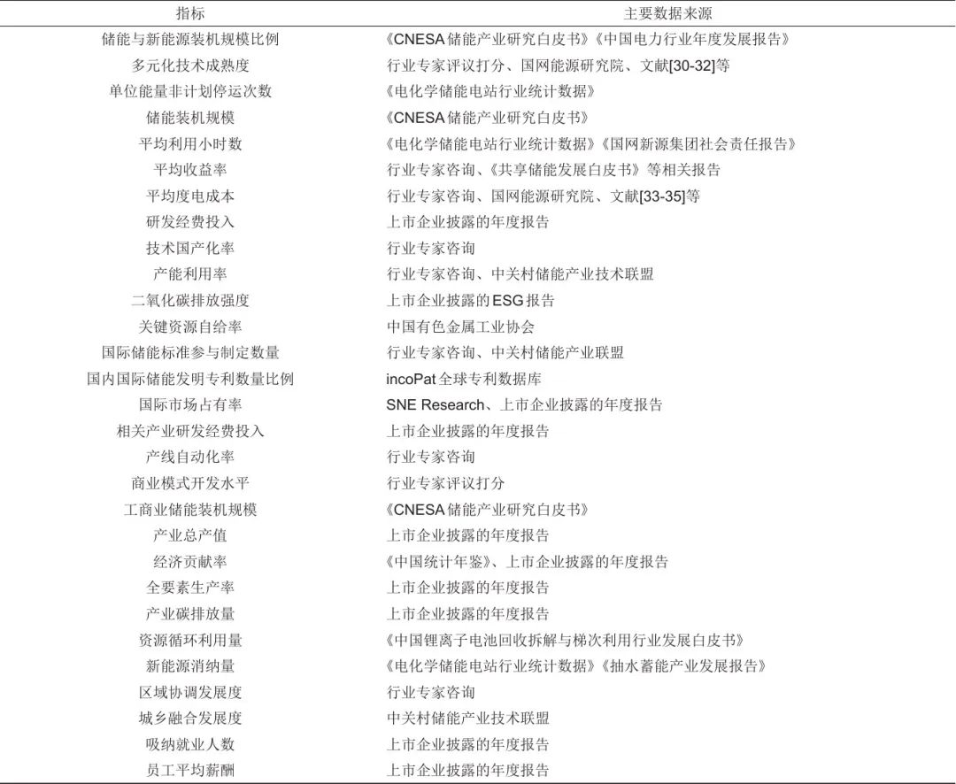 表3 儲(chǔ)能產(chǎn)業(yè)高質(zhì)量發(fā)展評(píng)價(jià)體系指標(biāo)數(shù)據(jù)來(lái)源
