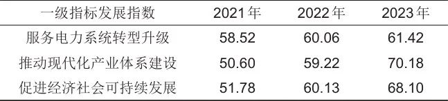 圖2 “服務(wù)電力系統(tǒng)轉(zhuǎn)型升級(jí)”維度的二級(jí)指標(biāo)發(fā)展指數(shù)