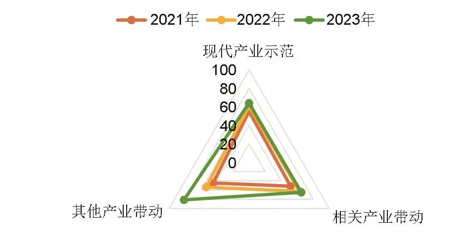圖4 2021—2023年“現(xiàn)代產(chǎn)業(yè)示范”的三級(jí)指標(biāo)變化