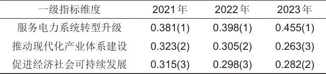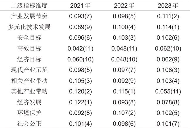 圖1展示了3個(gè)一級(jí)指標(biāo)對(duì)儲(chǔ)能產(chǎn)業(yè)高質(zhì)量發(fā)展指數(shù)的貢獻(xiàn)率,由圖1可知,在2021—2023年間,儲(chǔ)能產(chǎn)業(yè)高質(zhì)量發(fā)展的主要驅(qū)動(dòng)力來(lái)源于“推動(dòng)現(xiàn)代化產(chǎn)業(yè)體系建設(shè)”維度和“促進(jìn)經(jīng)濟(jì)社會(huì)可持續(xù)發(fā)展”維度,合計(jì)貢獻(xiàn)率保持在90%左右,相比之下“服務(wù)電力系統(tǒng)轉(zhuǎn)型升級(jí)”維度的推動(dòng)作用顯得較為微弱。儲(chǔ)能產(chǎn)業(yè)高質(zhì)量發(fā)展正在經(jīng)歷階段性失調(diào),基本目標(biāo)的推進(jìn)與其衍生目標(biāo)的實(shí)現(xiàn)之間出現(xiàn)了顯著的時(shí)間差與優(yōu)先級(jí)錯(cuò)配。這種階段性失衡符合多數(shù)新興產(chǎn)業(yè)的發(fā)展規(guī)律,需求的快速增長(zhǎng)往往能迅速吸引資本匯聚,催生規(guī)?;a(chǎn),而真正實(shí)現(xiàn)以高品質(zhì)產(chǎn)品為核心的正向市場(chǎng)反饋,則是一個(gè)復(fù)雜且耗時(shí)的過(guò)程,要求技術(shù)沉淀、市場(chǎng)成熟度及政策環(huán)境的共同優(yōu)化。盡管這種階段性失衡可被視為儲(chǔ)能產(chǎn)業(yè)高質(zhì)量發(fā)展自然路徑的一部分,但是仍然亟須得到改善。