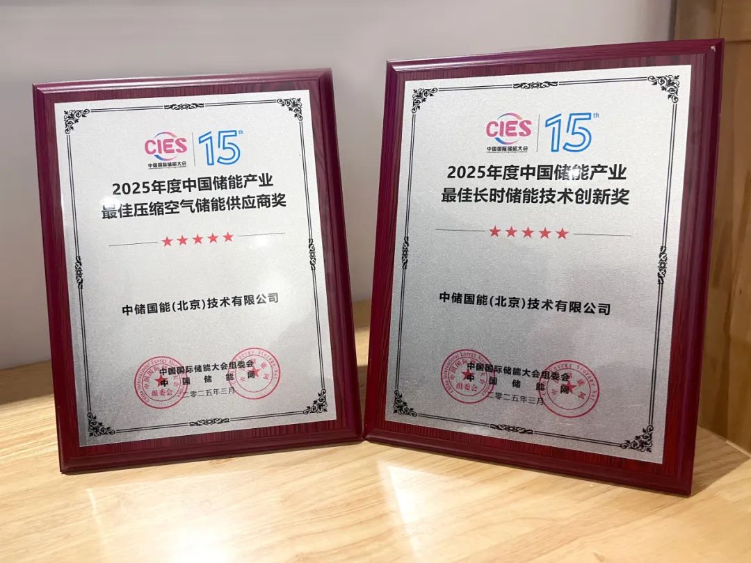 中國(guó)儲(chǔ)能網(wǎng)訊:3月23日,2025年度中國(guó)儲(chǔ)能產(chǎn)業(yè)最具影響力系列獎(jiǎng)項(xiàng)頒獎(jiǎng)晚宴在杭州國(guó)際博覽中心舉辦。中儲(chǔ)國(guó)能憑借出色的科技創(chuàng)新實(shí)力和具有行業(yè)標(biāo)桿性的重大示范工程應(yīng)用成果,獲得“中國(guó)儲(chǔ)能產(chǎn)業(yè)最佳壓縮空氣儲(chǔ)能供應(yīng)商獎(jiǎng)”和“中國(guó)儲(chǔ)能產(chǎn)業(yè)最佳長(zhǎng)時(shí)儲(chǔ)能技術(shù)創(chuàng)新獎(jiǎng)”。