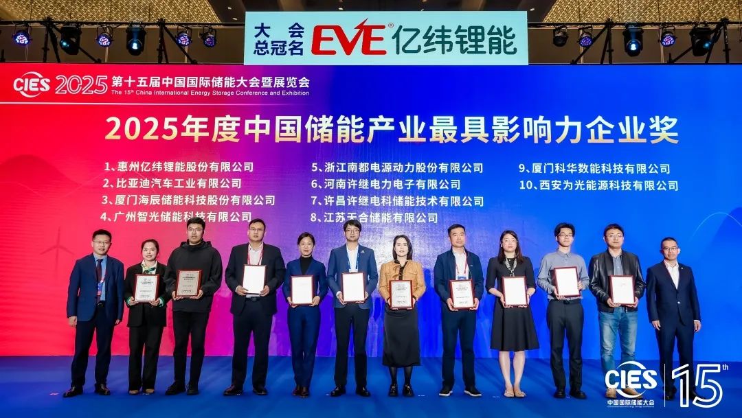 中國儲能網(wǎng)訊:2025年3月23-26日,CIES第十五屆中國國際儲能大會暨展覽會在杭州隆重召開。億緯鋰能攜全場景儲能解決方案亮相,助力儲能行業(yè)高質(zhì)量發(fā)展。億緯鋰能以產(chǎn)品創(chuàng)新力、品牌影響力、市場競爭力等方面的優(yōu)秀表現(xiàn),榮獲“2025年度中國儲能產(chǎn)業(yè)最具影響力企業(yè)獎(jiǎng)”,億緯鋰能高級副總裁、億緯儲能總裁陳翔榮獲“2025年度中國儲能產(chǎn)業(yè)功勛人物暨卓越貢獻(xiàn)獎(jiǎng)”。