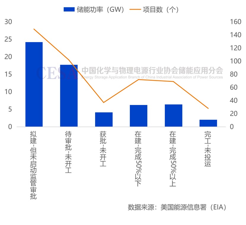 截至2024年底,美國能源信息署(EIA)共公示了457個美國大規(guī)模電池儲能擬在建項目,總規(guī)模達(dá)60.99GW。