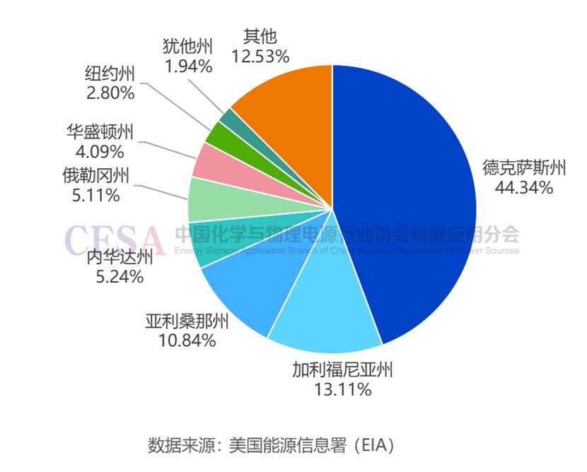 圖 美國擬在建電池儲能項目各區(qū)域規(guī)模占比