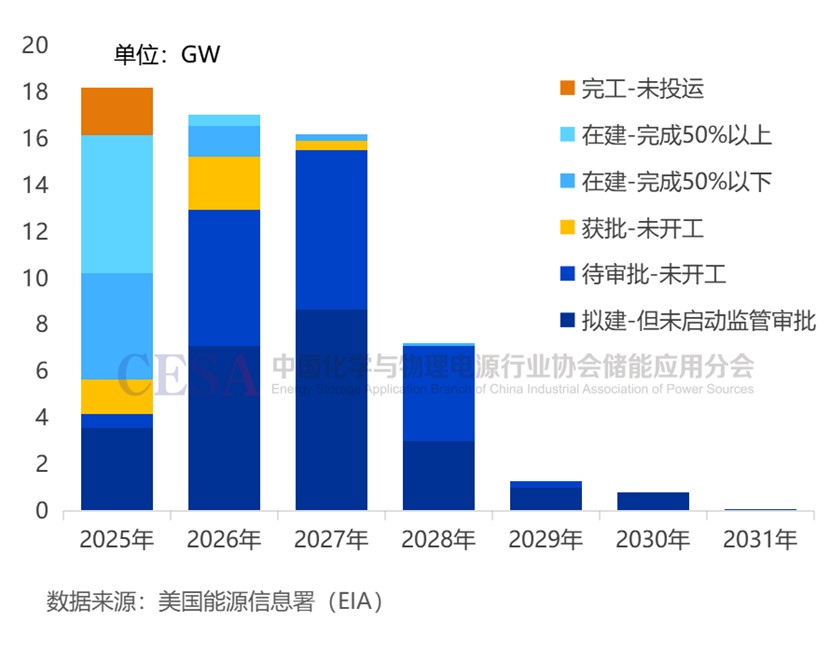 圖 美國擬在建項目不同年份計劃投運規(guī)模及進(jìn)度