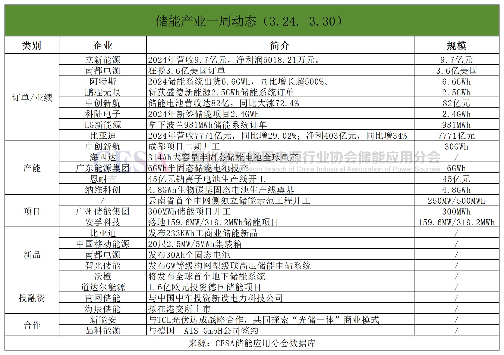 訂單/業(yè)績方面,中創(chuàng)新航儲能電池營收達(dá)82億,同比大漲72.4%;南都電源狂攬3.6億美國訂單;阿特斯2024儲能系統(tǒng)出貨6.6GWh,同比增長超500%;鵬程無限斬獲盛德新能源2.5GWh儲能系統(tǒng)訂單。