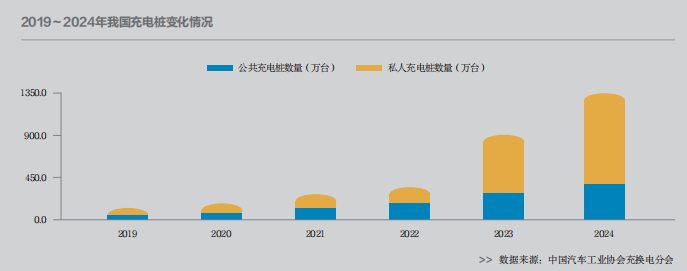 根據(jù)中國(guó)電動(dòng)汽車充電基礎(chǔ)設(shè)施促進(jìn)聯(lián)盟的統(tǒng)計(jì),截至2024年12月底,我國(guó)電動(dòng)汽車充電設(shè)施總數(shù)達(dá)到1281.8萬臺(tái),同比增長(zhǎng)49.1%;其中公共充電設(shè)施357.9萬臺(tái),私人充電設(shè)施923.9萬臺(tái)。按照2025年1月公安部發(fā)布的全國(guó)新能源汽車保有量3140萬輛計(jì)算,我國(guó)車樁比為2.44:1。2024年,我國(guó)電動(dòng)汽車充電設(shè)施增量為422.2萬臺(tái),月均增長(zhǎng)35.2萬臺(tái)。全年充電量突破1100億千瓦時(shí),同比增長(zhǎng)38%。全國(guó)高速公路服務(wù)區(qū)累計(jì)建成充電樁3.5萬臺(tái),服務(wù)區(qū)覆蓋率達(dá)到98%。