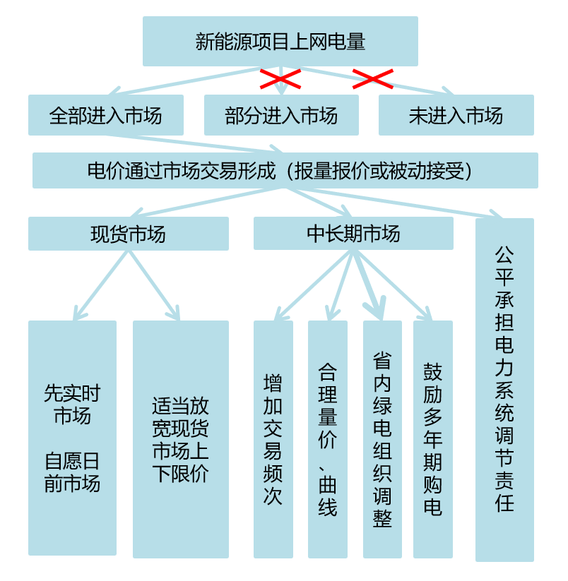 1. 新能源上網(wǎng)電量全面進入電力市場交易,從“溫室”進入“市場”,價格由市場形成。