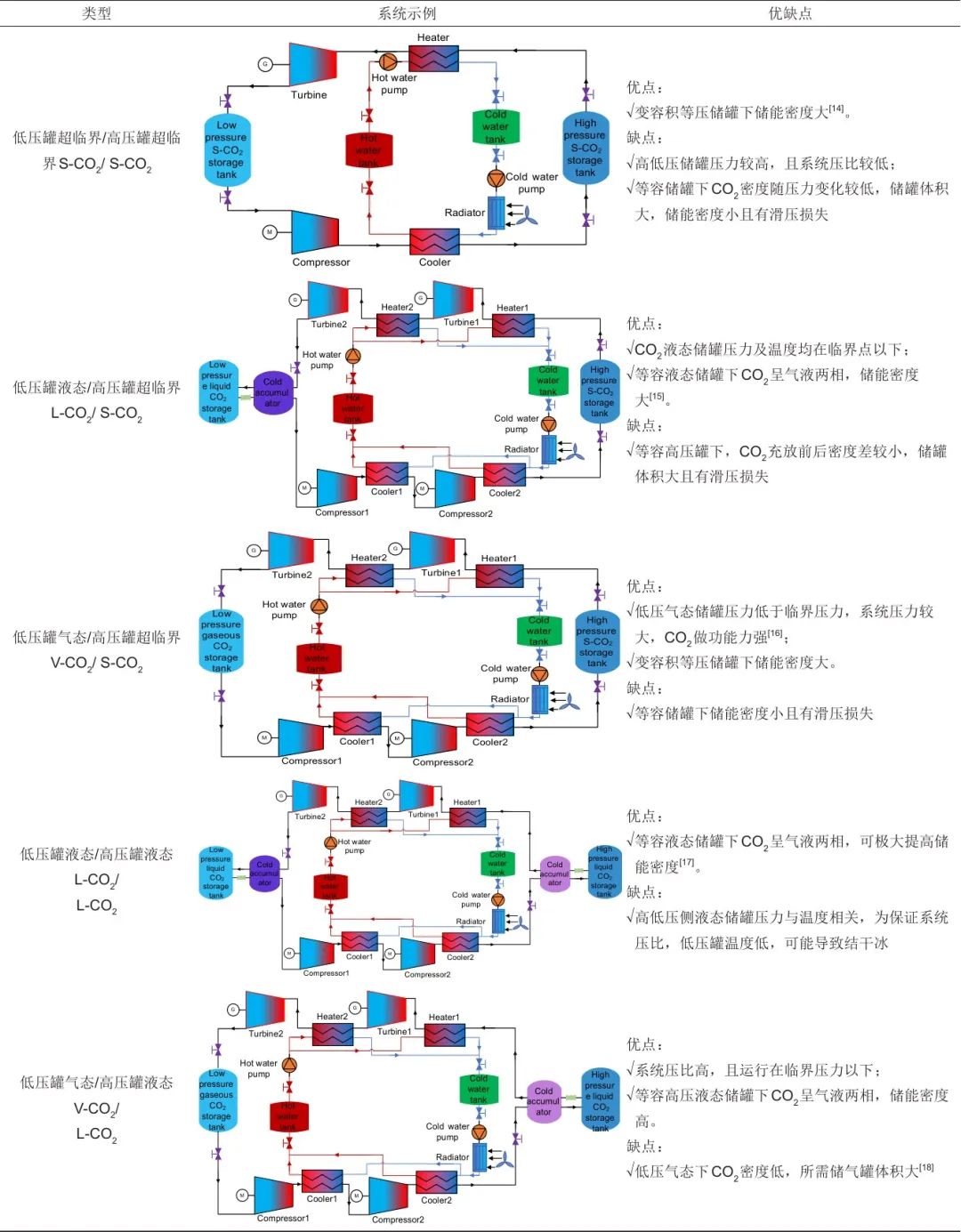 表1 壓縮CO2儲能系統(tǒng)分類及結構示例