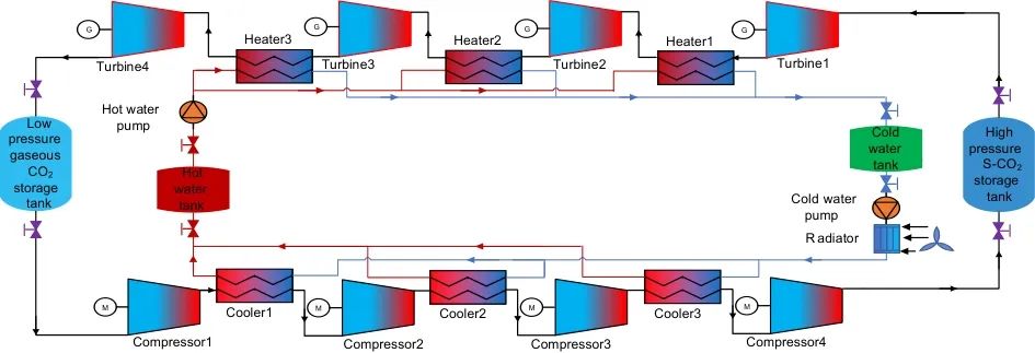 圖4 基于二級壓縮-二級膨脹的CO2儲能系統(tǒng)