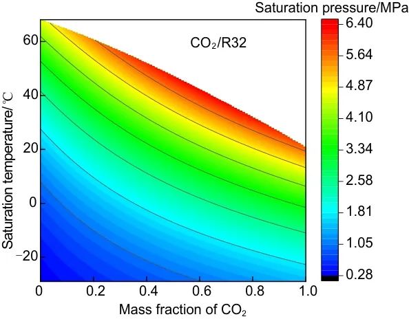 圖18 不同質量分數下CO2混合工質的飽和溫度-壓力特性
