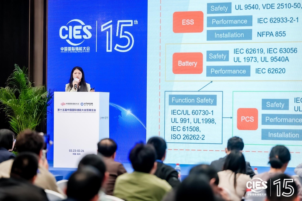 在3月24日下午進(jìn)行的儲能消防、安全與檢測認(rèn)證專場中,SGS 通標(biāo)標(biāo)準(zhǔn)技術(shù)服務(wù)有限公司儲能技術(shù)經(jīng)理劉歡做了題為《儲能系統(tǒng)相關(guān)國際標(biāo)準(zhǔn)解析》的主題報告演講。