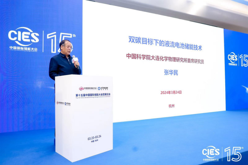 在3月24日上午的液流電池專場專場中,中國科學院大連化學物理研究所首席研究員張華民作了題為《雙碳目標下的液流電池儲能技術》的主旨演講。