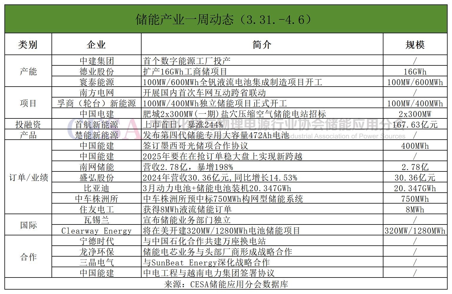 訂單/業(yè)績方面,比亞迪3月動力電池+儲能電池裝機20.347GWh;南網(wǎng)儲能2024年營收2.78億,暴增198%;中車株洲所預中標750MWh構(gòu)網(wǎng)型儲能系統(tǒng);住友電工獲得8MWh液流儲能訂單;中國能建董事長表示,2025年要在在搶訂單穩(wěn)大盤上實現(xiàn)新跨越。