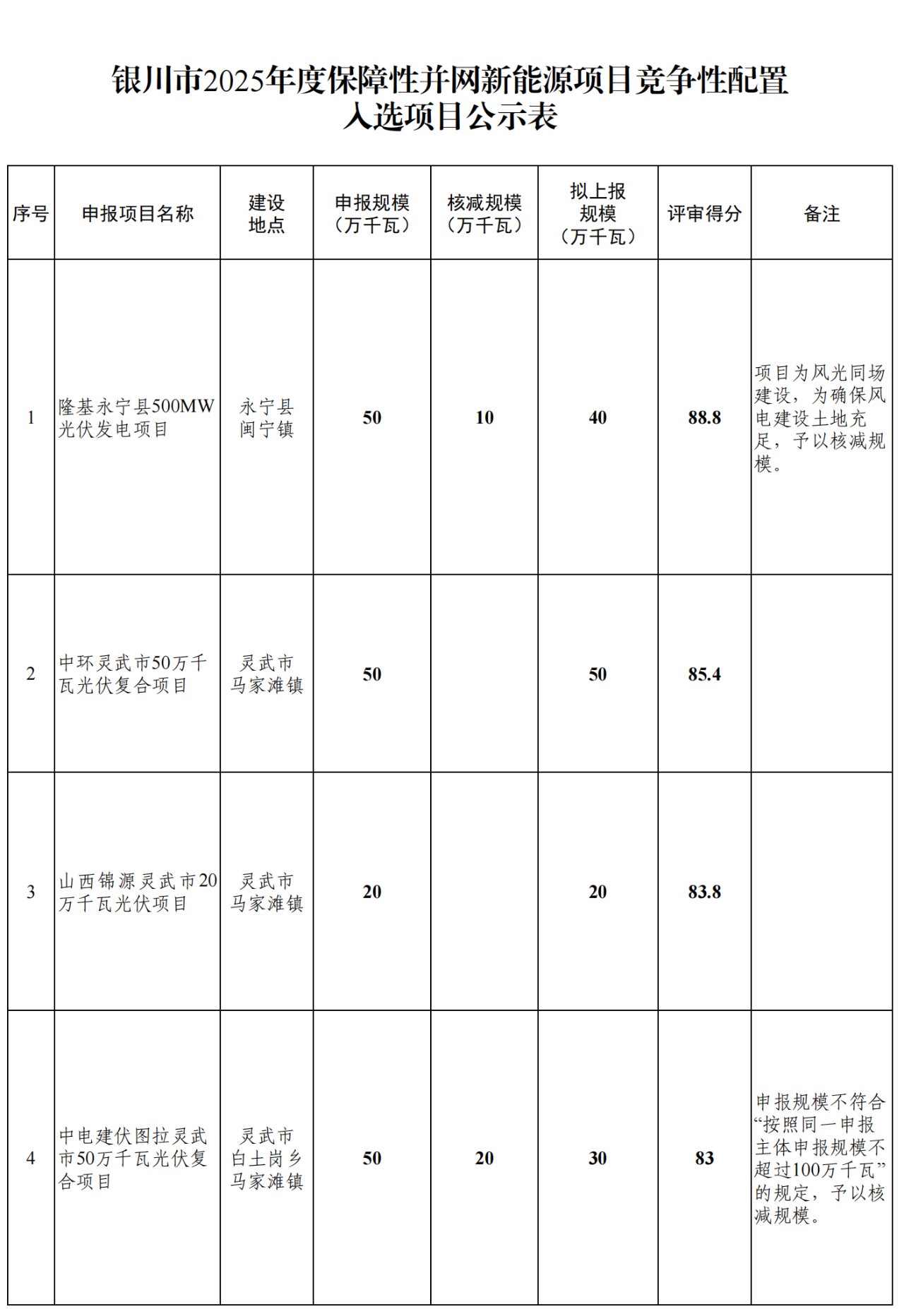 附件:銀川市2025年度保障性并網(wǎng)新能源項(xiàng)目競爭性配置入選項(xiàng)目公示表