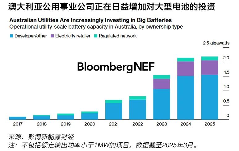 澳大利亞受監(jiān)管電網(wǎng)公司擁有的電池裝機容量
