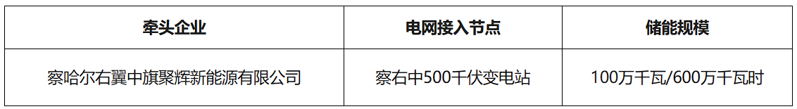 察右中旗100萬千瓦/600萬千瓦時電源側(cè)儲能項目牽頭企業(yè)公示