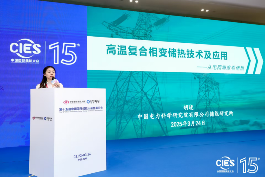 在3月24日下午的儲(chǔ)熱與長(zhǎng)時(shí)儲(chǔ)能專場(chǎng)中,中國(guó)電力科學(xué)研究院有限公司儲(chǔ)能研究所教授級(jí)高級(jí)工程師胡曉作了題為《高溫復(fù)合相變儲(chǔ)熱技術(shù)及應(yīng)用》的主旨演講。