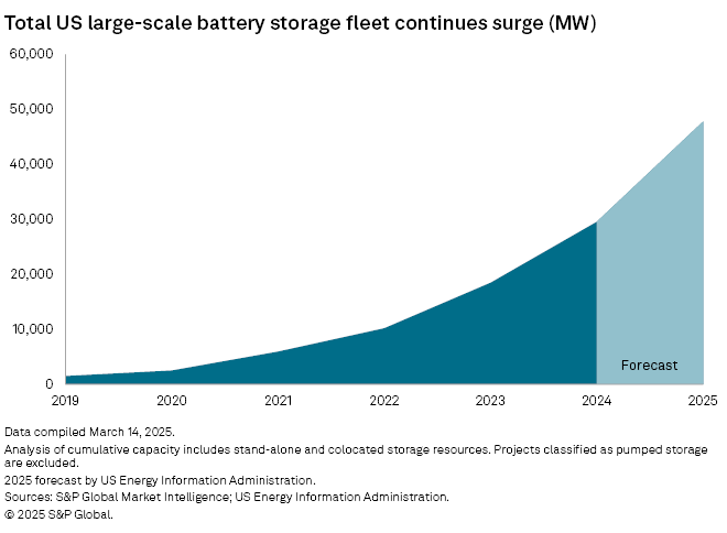 受套利和基本電網(wǎng)服務(wù)收入的推動,尤其是在加州 ISO 和德克薩斯州電力可靠性委員會市場,美國電池儲能系統(tǒng)在 2020 年至 2024 年間增長了十倍以上,超過了抽水蓄能。去年,電池儲能系統(tǒng)也首次超過了天然氣年度新增容量。