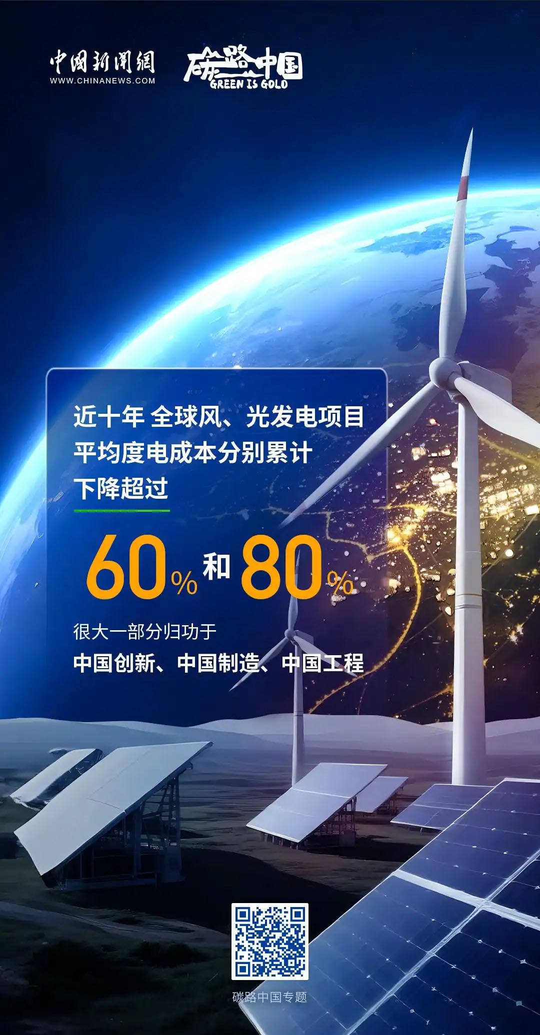 中國儲能網(wǎng)訊:國際可再生能源署近期發(fā)布的報告顯示,2024年全球可再生能源裝機容量增長585吉瓦,占全球新增電力裝機容量的92.5%,年增長率達到15.1%,創(chuàng)歷史新高。其中,中國新增可再生能源裝機容量占全球總增量約六成。報告指出,過去10年,全球風電項目平均度電成本累計下降超過60%,光伏發(fā)電項目下降超過80%,很大一部分要歸功于中國的貢獻。