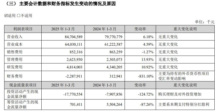 此外,財(cái)報(bào)顯示,一季度公司研發(fā)投入達(dá)到48.14億元,同比增長10.92%。
