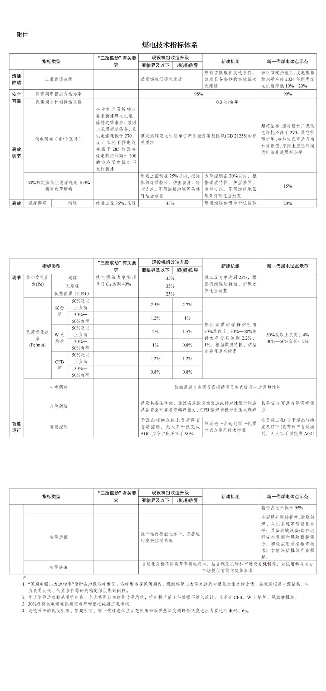 為適應(yīng)新型電力系統(tǒng)發(fā)展,圍繞清潔降碳、安全可靠、高效調(diào)節(jié)、智能運(yùn)行等方向進(jìn)一步深化拓展煤電技術(shù)指標(biāo)體系,指導(dǎo)現(xiàn)役機(jī)組改造升級、新建機(jī)組建設(shè)運(yùn)行和新一代煤電試點(diǎn)示范。