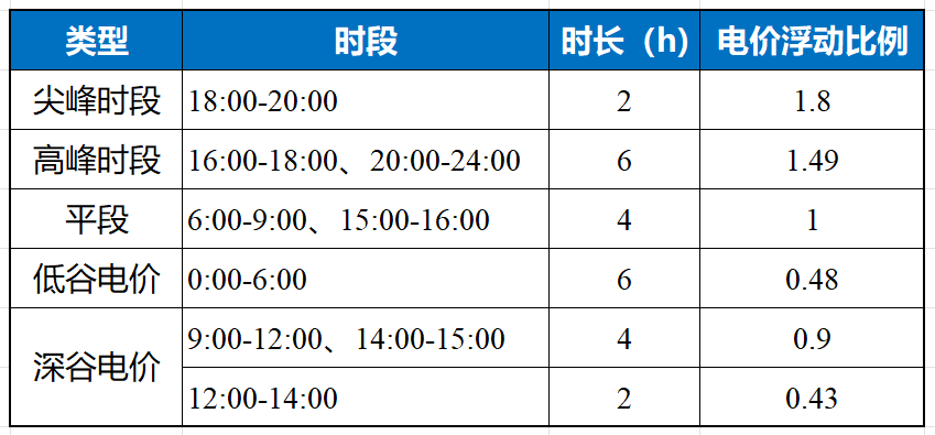 根據(jù)湖北省此前發(fā)布的《省發(fā)改委關(guān)于完善工商業(yè)分時(shí)電價(jià)機(jī)制有關(guān)事項(xiàng)的通知》,平常月份尖峰、高峰、平時(shí)、低谷時(shí)段電價(jià)比為1.8:1.49:1:0.48。夏季、冬季用電高峰月份(夏季7月、8月,冬季12月、1月),用電尖峰時(shí)段電價(jià)浮動(dòng)比例由1.8調(diào)整為2,低谷時(shí)段電價(jià)浮動(dòng)比例由0.48調(diào)整為0.45。