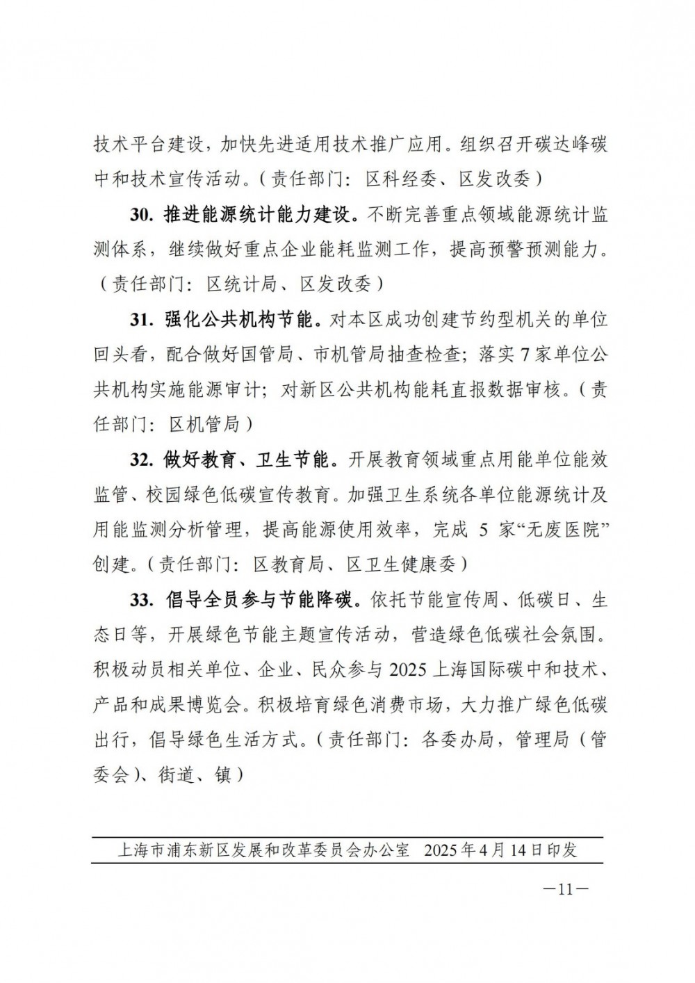 中國儲能網訊:4月15日,上海市浦東新區(qū)發(fā)展和改革委員會發(fā)布關于印發(fā)浦東新區(qū)2025年碳達峰碳中和及節(jié)能重點工作安排的通知。文件明確,積極推動新型能源體系建設。組織新型能源技術開發(fā)示范項目申報,推動新型儲能、虛擬電廠等新能源示范項目建設。開展電網建設計劃管理和專項檢查。配合市級部門推進海上風電項目、外高橋一廠煤電升級改造等重大能源項目。