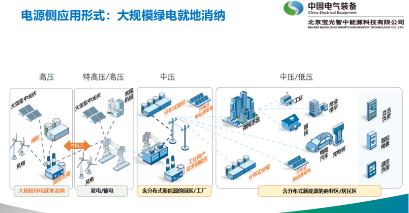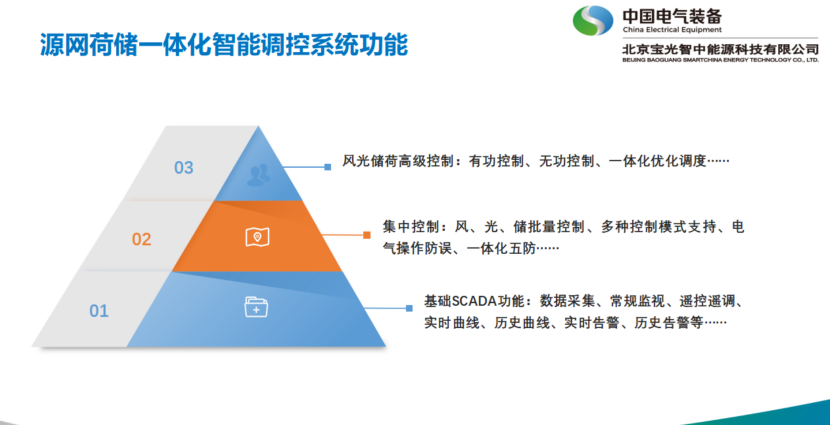 1.電源側(cè):要求新能源發(fā)電與就地負(fù)荷配套,原則上不允許向電網(wǎng)反送電,僅允許從電網(wǎng)獲取必要支撐。這種模式需要構(gòu)建源網(wǎng)荷儲(chǔ)一體化智能調(diào)控系統(tǒng),實(shí)現(xiàn)與省調(diào)、地調(diào)的上下級(jí)協(xié)同,通過升壓站接口對(duì)風(fēng)光儲(chǔ)設(shè)備進(jìn)行集中調(diào)度和協(xié)調(diào)控制。系統(tǒng)功能架構(gòu)主要包含三個(gè)層次:基礎(chǔ)監(jiān)視控制、集中快速控制和分級(jí)優(yōu)化調(diào)度,重點(diǎn)解決風(fēng)光儲(chǔ)最優(yōu)消納與電網(wǎng)安全運(yùn)行的平衡問題。該系統(tǒng)功能可劃分為四大模塊:全景監(jiān)控模塊負(fù)責(zé)場站常規(guī)監(jiān)測和關(guān)鍵指標(biāo)分析;協(xié)同控制模塊實(shí)現(xiàn)與電網(wǎng)的聯(lián)合調(diào)控;預(yù)測模塊應(yīng)對(duì)新能源波動(dòng)性挑戰(zhàn);運(yùn)維模塊則通過故障預(yù)警、狀態(tài)診斷等手段提升可靠性,減少停電時(shí)間。此外,系統(tǒng)還集成有功/無功控制、優(yōu)化調(diào)度等高級(jí)分析功能,形成完整的智能調(diào)控平臺(tái),為風(fēng)光儲(chǔ)一體化運(yùn)行提供全面支撐。