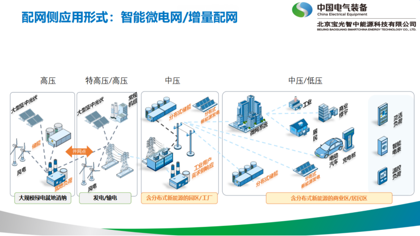 2.配網(wǎng)側(cè):主要面向園區(qū)、工廠、居民區(qū)及商業(yè)區(qū)等分布式場景,其特點(diǎn)是具有海量分散的負(fù)荷和被控對(duì)象,這與電源側(cè)集中式控制模式存在本質(zhì)差異。系統(tǒng)架構(gòu)基于公共通信網(wǎng)絡(luò)構(gòu)建,采用全新的控制策略來應(yīng)對(duì)分布式能源的復(fù)雜管理需求,重點(diǎn)解決智慧能源監(jiān)控、虛擬電廠協(xié)調(diào)控制、智能運(yùn)維及智能配電等核心問題。該解決方案與增量配網(wǎng)和虛擬電廠深度結(jié)合,其功能架構(gòu)同樣包含監(jiān)控、優(yōu)化控制和運(yùn)維等模塊,但針對(duì)配網(wǎng)特性進(jìn)行了專門設(shè)計(jì)。通過分布式控制算法和邊緣計(jì)算技術(shù),實(shí)現(xiàn)對(duì)海量分布式資源的精準(zhǔn)管控,形成與電源側(cè)集中式管理相互補(bǔ)充的完整能源管理體系,為配網(wǎng)側(cè)的清潔能源高效利用提供技術(shù)支撐。