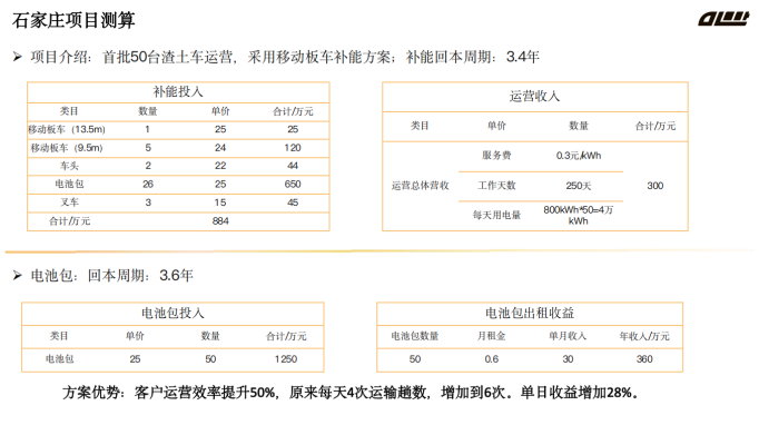 據(jù)了解,該產(chǎn)品的單個(gè)積木電池包帶電量高達(dá)452kWh,采用叉車加專用吊具操作,輔以專用小程序與監(jiān)管平臺的雙重智慧服務(wù),真正實(shí)現(xiàn)“換電5分鐘,運(yùn)營全天候”。該方案具有大電量、輕量化、長壽命特性,且建造成本僅為固定充換電站的四分之一,可廣泛應(yīng)用于半掛牽引車等專用車換電、高速公路服務(wù)區(qū)補(bǔ)能、緊急救援現(xiàn)場供電、大型活動(dòng)現(xiàn)場供電、礦山及礦井野外工地供電、電動(dòng)重卡超充樁調(diào)峰配儲等多種場景。